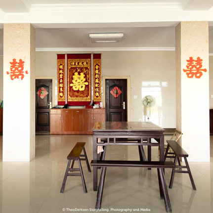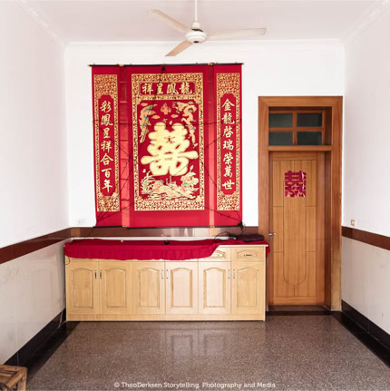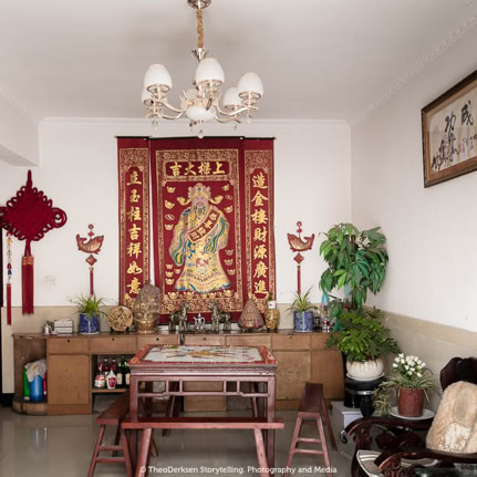 The typical colours came about partly because I photographed my angels at night, and only those illuminated by the backlight of a light box had this heavenly look. During the day they did not succeed! From the beginning, I photographed my angels in a round frame. The round image is common in Chinese art. A tribute to the place where I met them, Hangzhou!