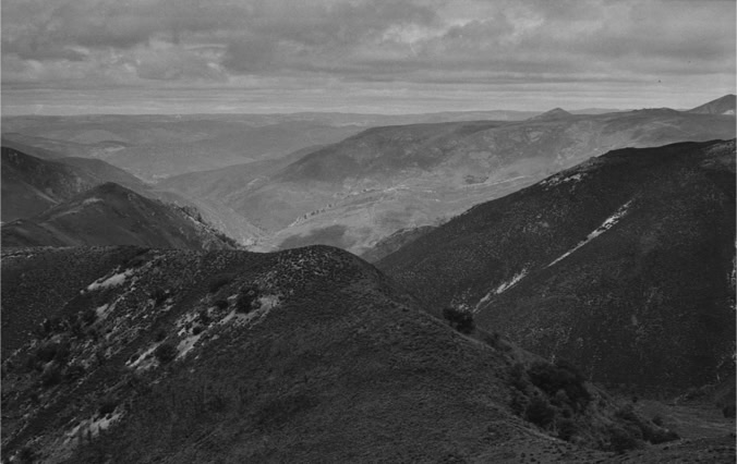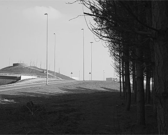 Geen geluid van de stad is hoorbaar. Holle wegen lopen over de landkaart.