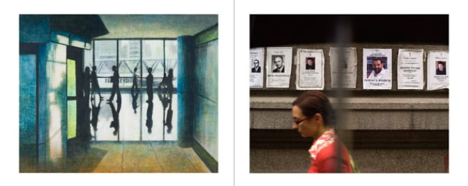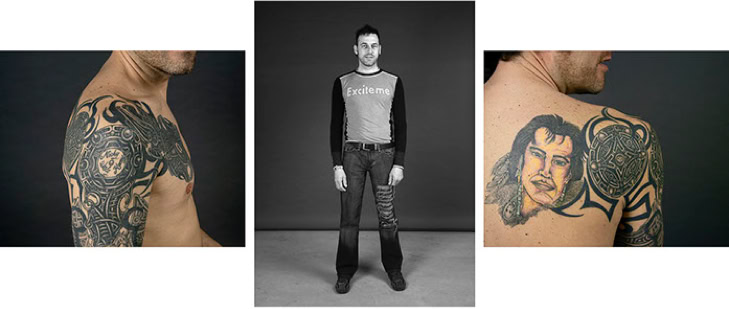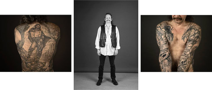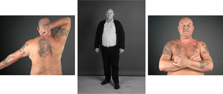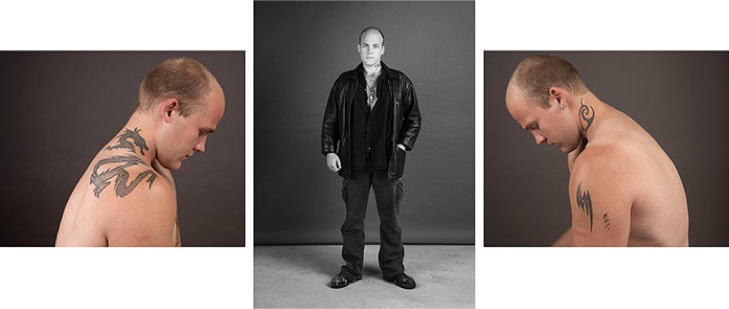 A triptych of each subject's creation is presented in photographic form. The central image is in black and white and depicts the subject as they might be encountered in real life. The two side panels are in colour and focus on the intimacy of the body. As the series progresses, the anonymity of the subjects gradually disappears, and the mystery of their identities becomes more apparent.