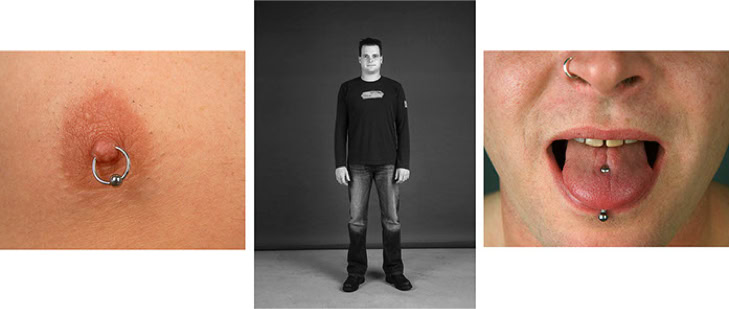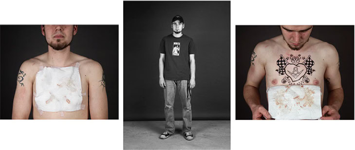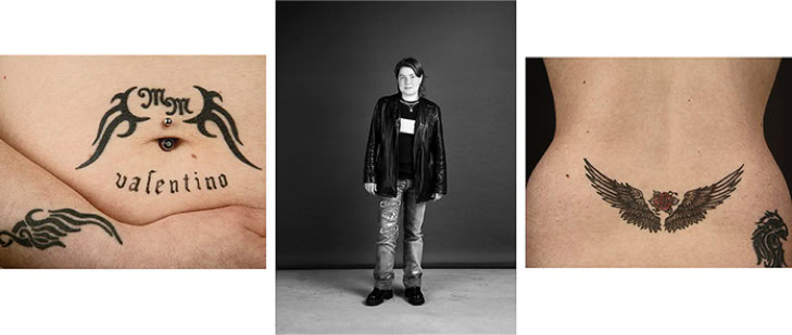 Every day, numerous individuals pass by. These are people with whom one does not have a personal relationship and about whom one knows very little. One may look at them, but not always with a conscious and deliberate intention. The majority of passers-by do not demand one's attention. The initial concept of my photographic series is the unconventional adornment of the body, frequently concealed beneath clothing. By "exposing" oneself, a sense of intimacy is fostered. In triptychs of images, captured on the skin and at close range, the individual reveals their "secret," thereby transcending anonymity.