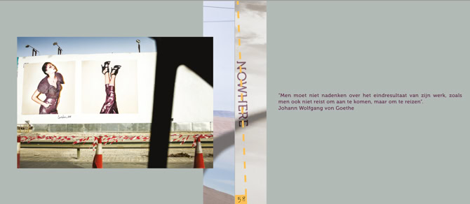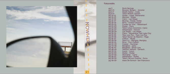 As an artist he can use the images of what he has come across to show us nowhere. In the proverbial sense of the word: you are nowhere, you feel lost. For example, in the desolate of the landscape, in the loneliness of people, the alienating effect of a photographed thing and even of an entire city.