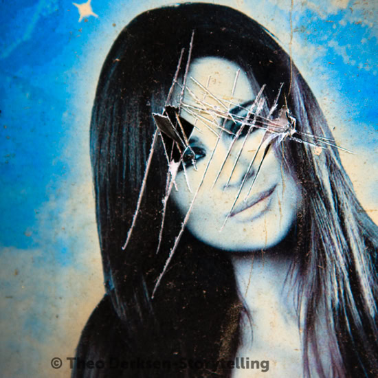 In my photographs, I took their faces out of context, a detail of the large billboards. When I saw the result, I was deeply moved by these images. The unexpected beauty of angels emerging from 'earthly' advertising. That was serendipity.