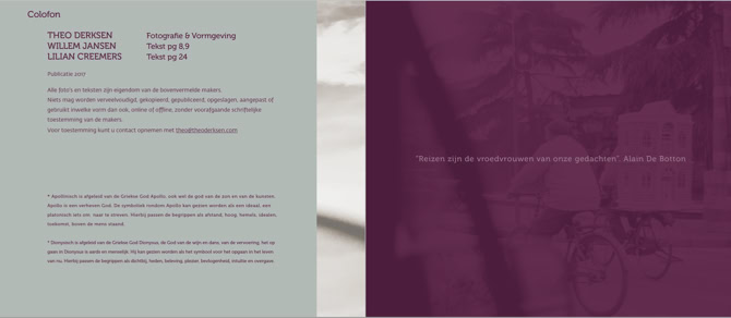 The photographer Theo Derksen went on the road without having fully planned to arrive somewhere (at a designated place) at a specified time. He has chosen the adventure and is surprised by what he encounters along the way. People, things, a city, landscape, etc .. He recorded all that in 36 photos (selection).